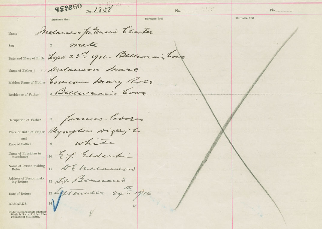 Male Birth Registration: Year: 1916 number: 45900360
