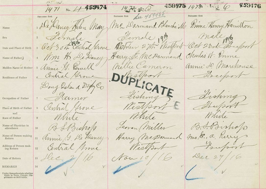 Female Birth Registration: Year: 1916 number: 45900474