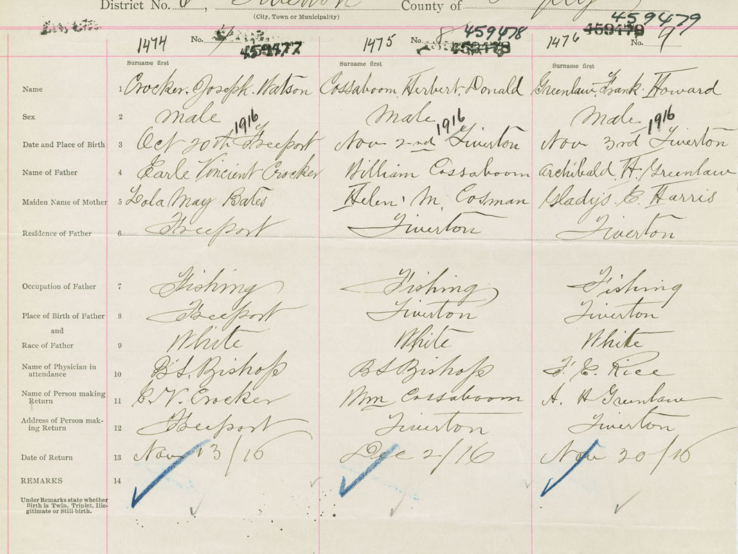 Male Birth Registration: Year: 1916 number: 45900477