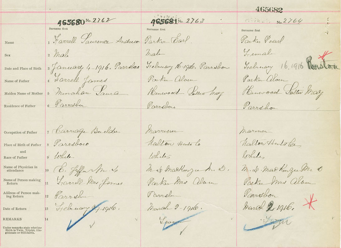 Male Birth Registration: Year: 1916 number: 46500680