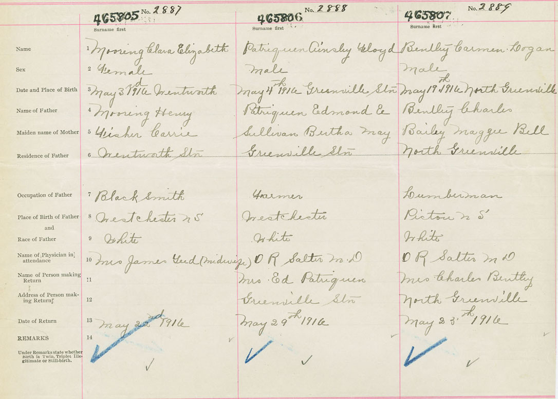 Female Birth Registration: Year: 1916 number: 46500805