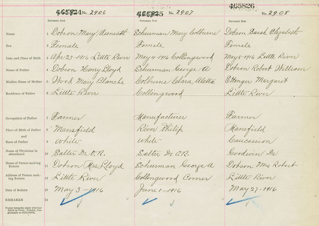 Female Birth Registration: Year: 1916 number: 46500824