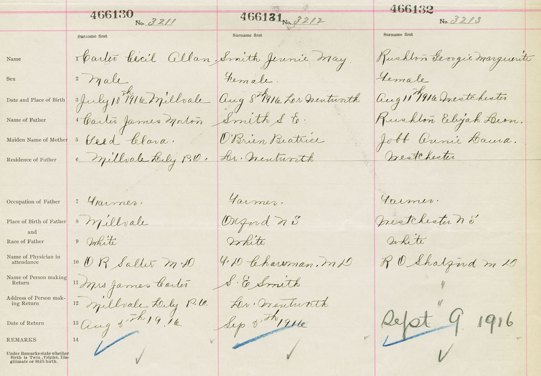 Female Birth Registration: Year: 1916 number: 46600132