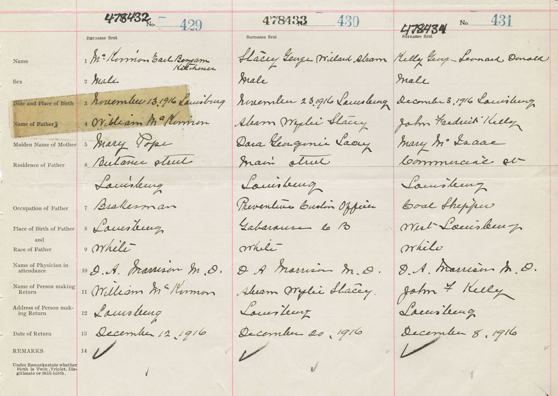 Male Birth Registration: Year: 1916 number: 47800434