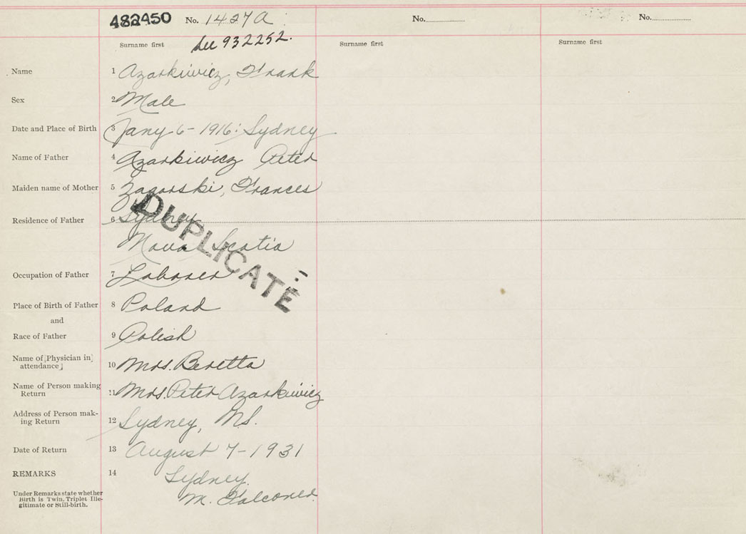 Male Birth Registration: Year: 1916 number: 48200450