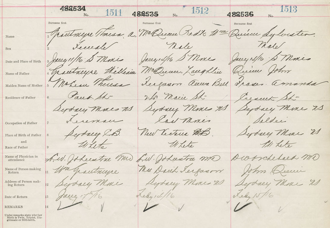 Female Birth Registration: Year: 1916 number: 48200534