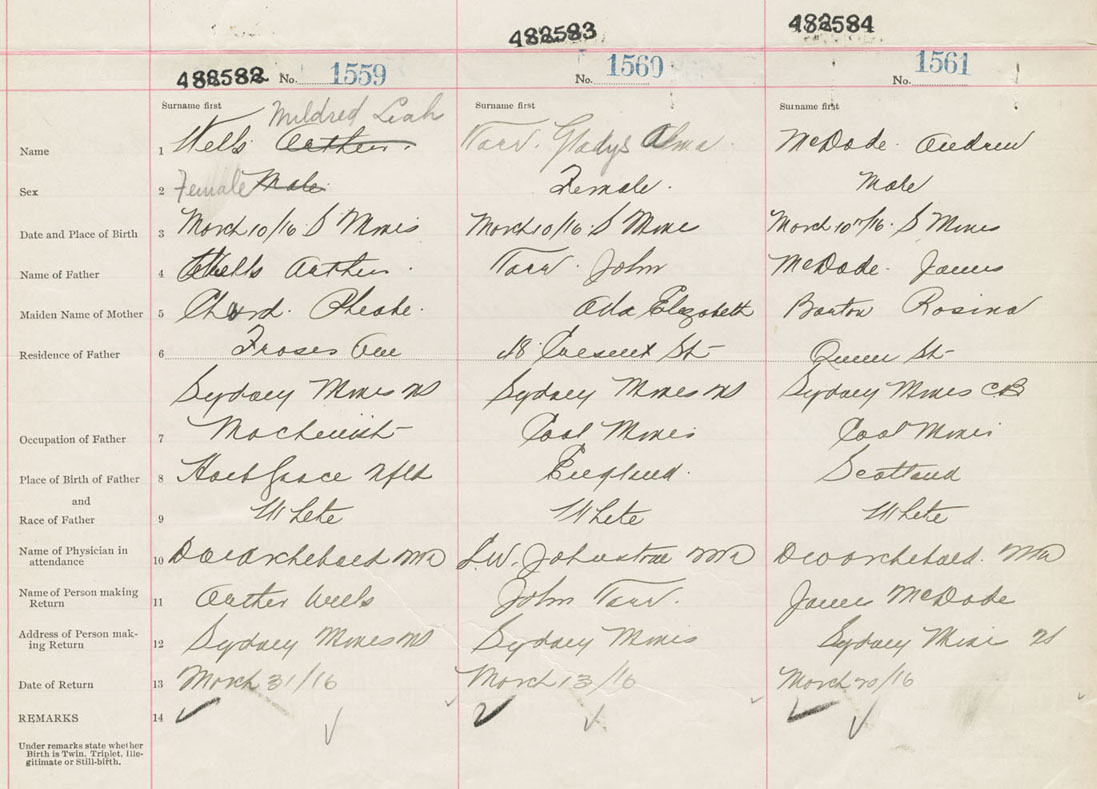 Female Birth Registration: Year: 1916 number: 48200582