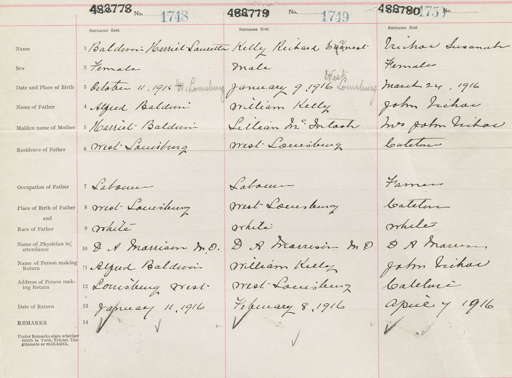 Female Birth Registration: Year: 1916 number: 48200780