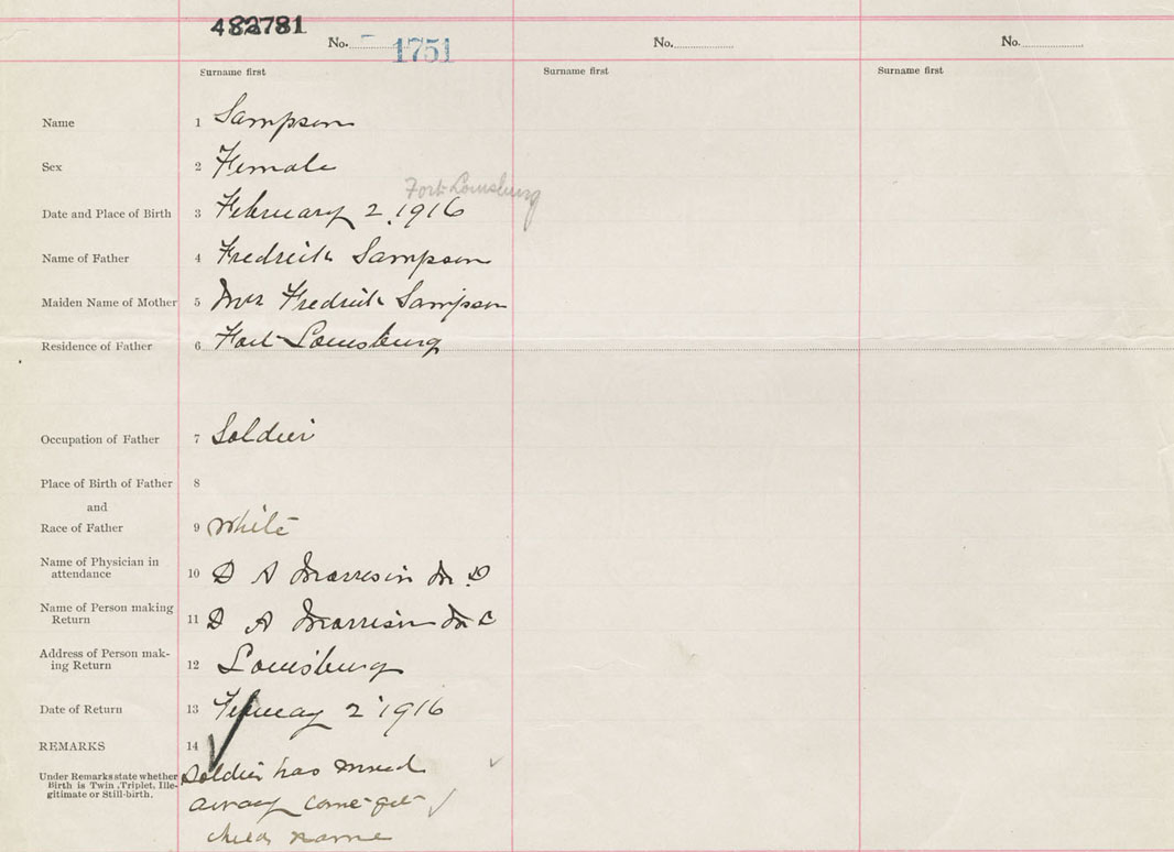Female Birth Registration: Year: 1916 number: 48200781
