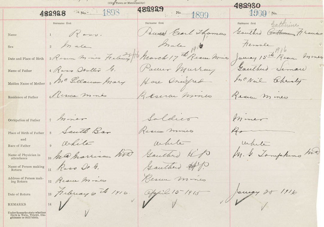 Male Birth Registration: Year: 1916 number: 48200928
