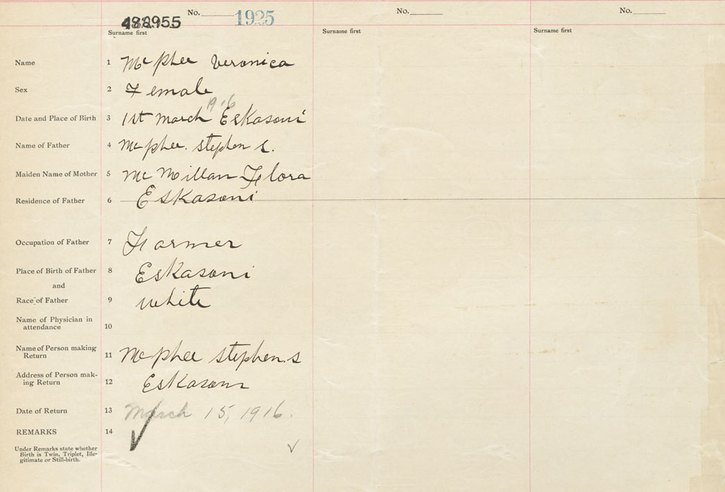 Female Birth Registration: Year: 1916 number: 48200955