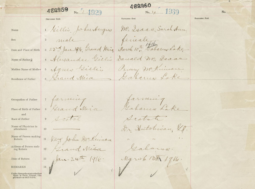 Female Birth Registration: Year: 1916 number: 48200960