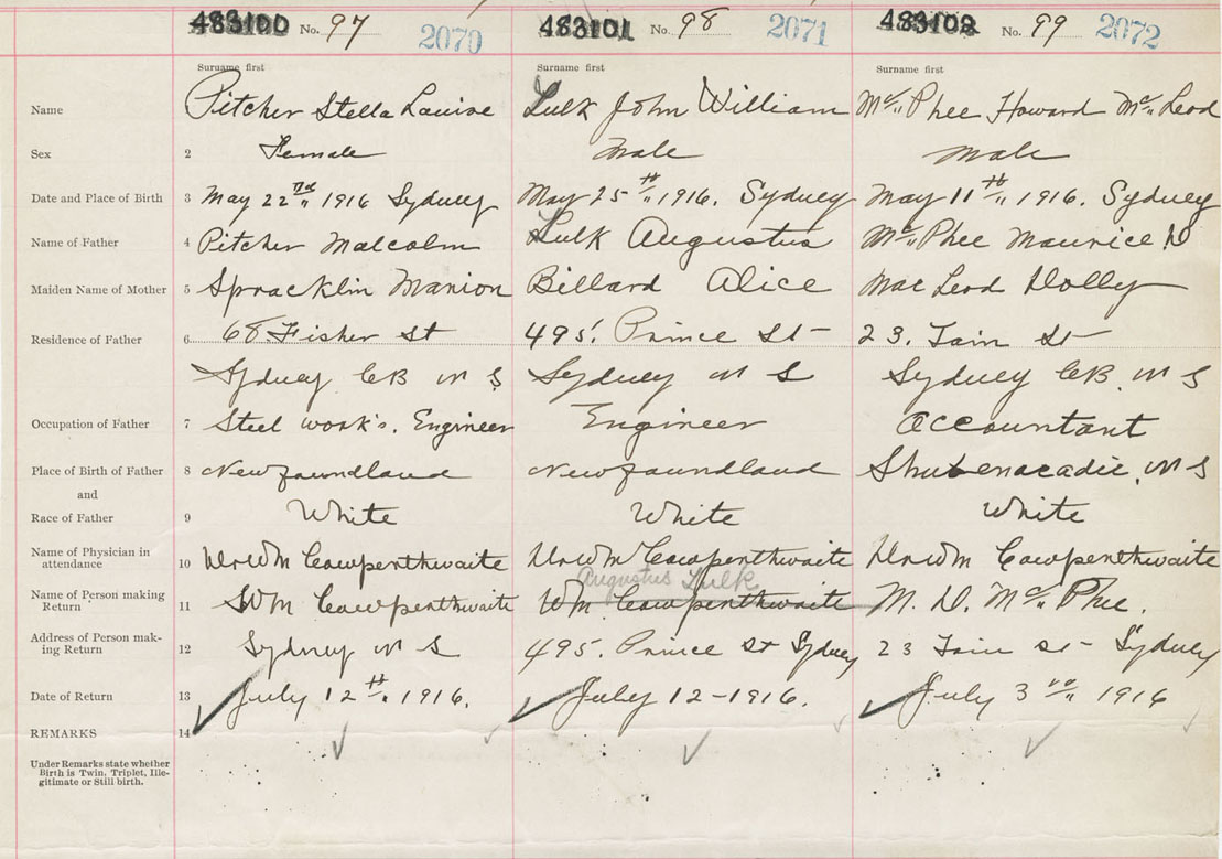 Female Birth Registration: Year: 1916 number: 48300100