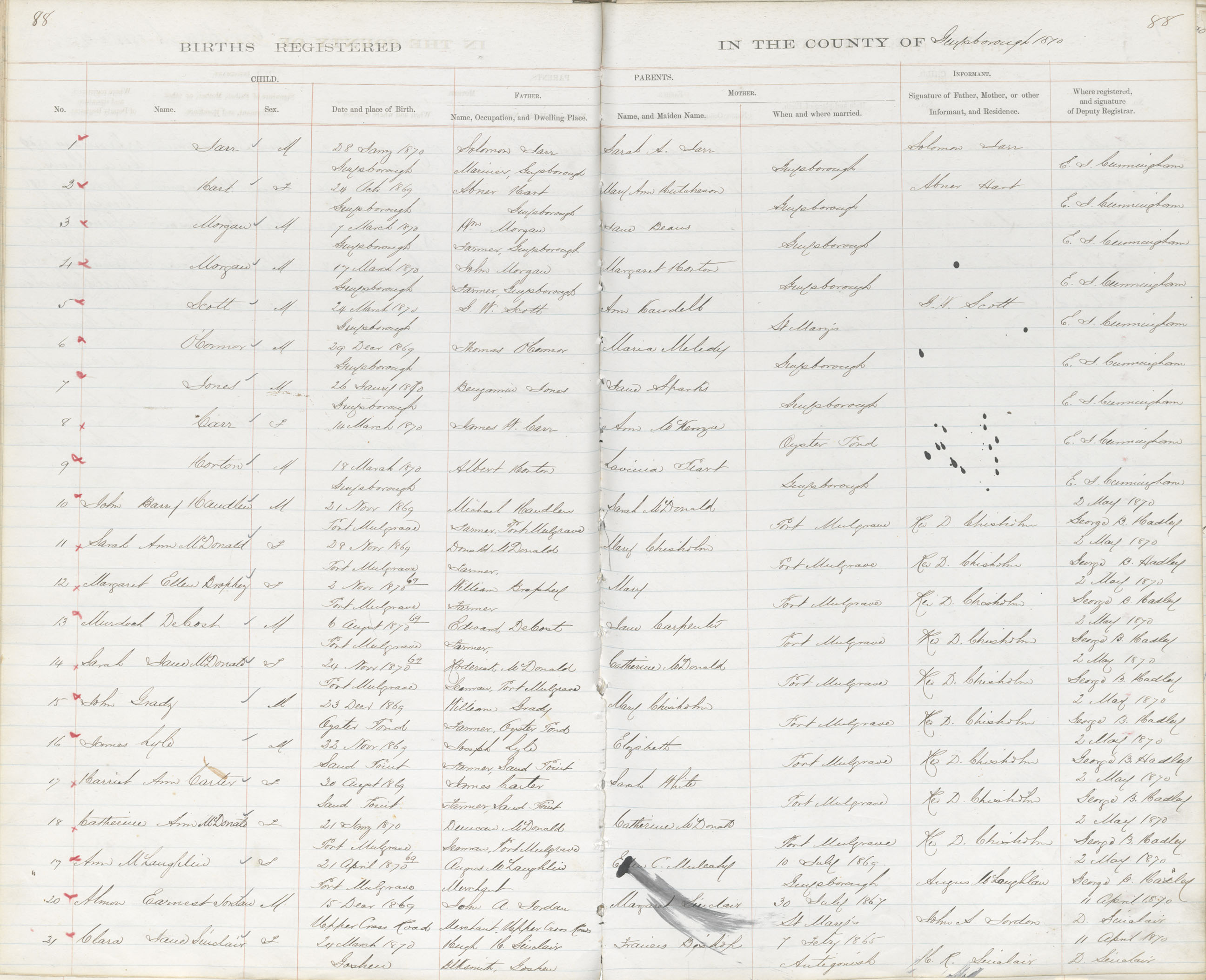 Male Birth Registration: Year: 1870 book: 1808 page: 88 number: 1