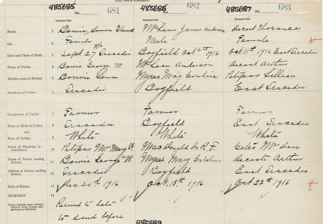 Female Birth Registration: Year: 1916 number: 48500685