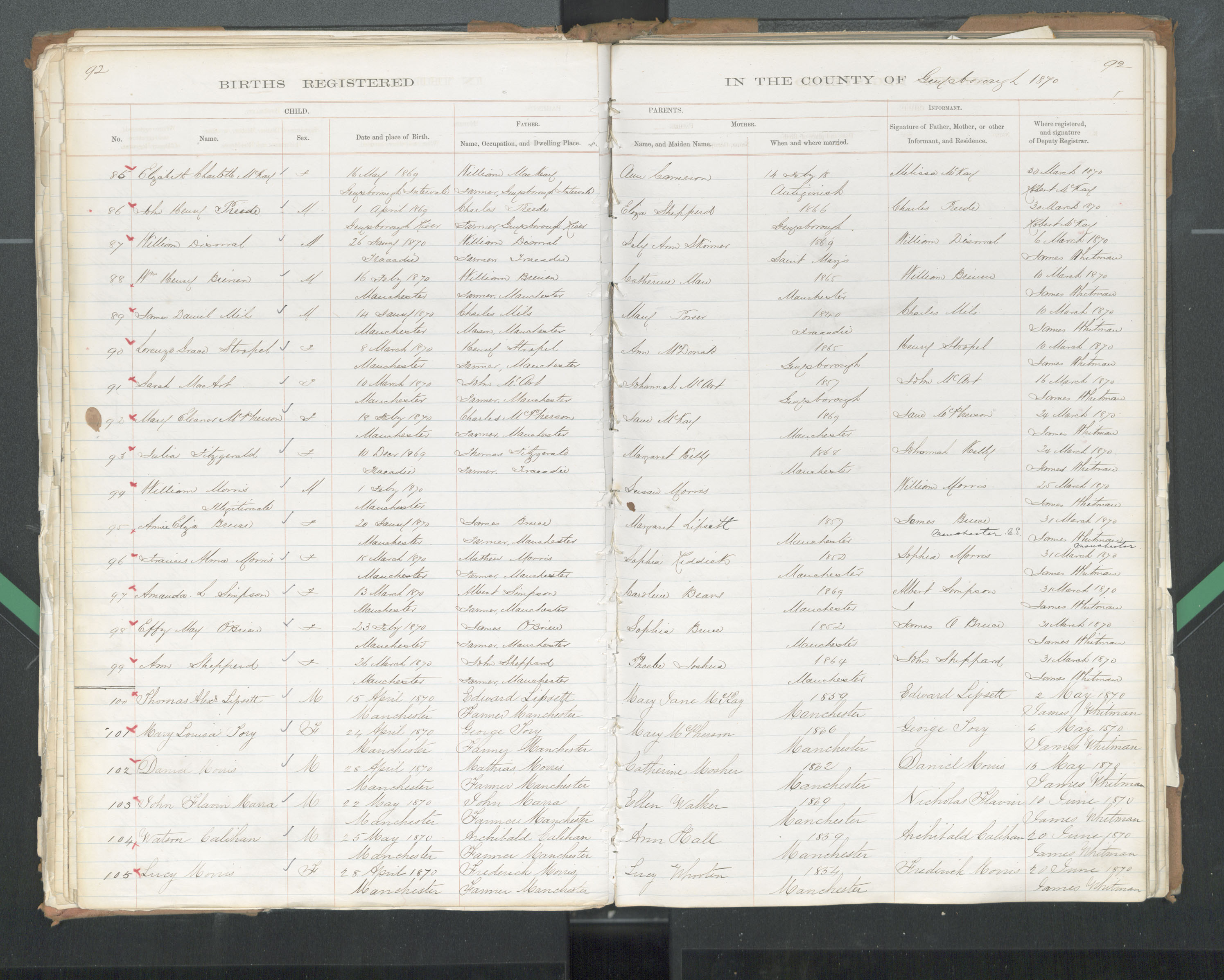 Birth Registration: Year: 1870 book: 1808 page: 92 number: 97
