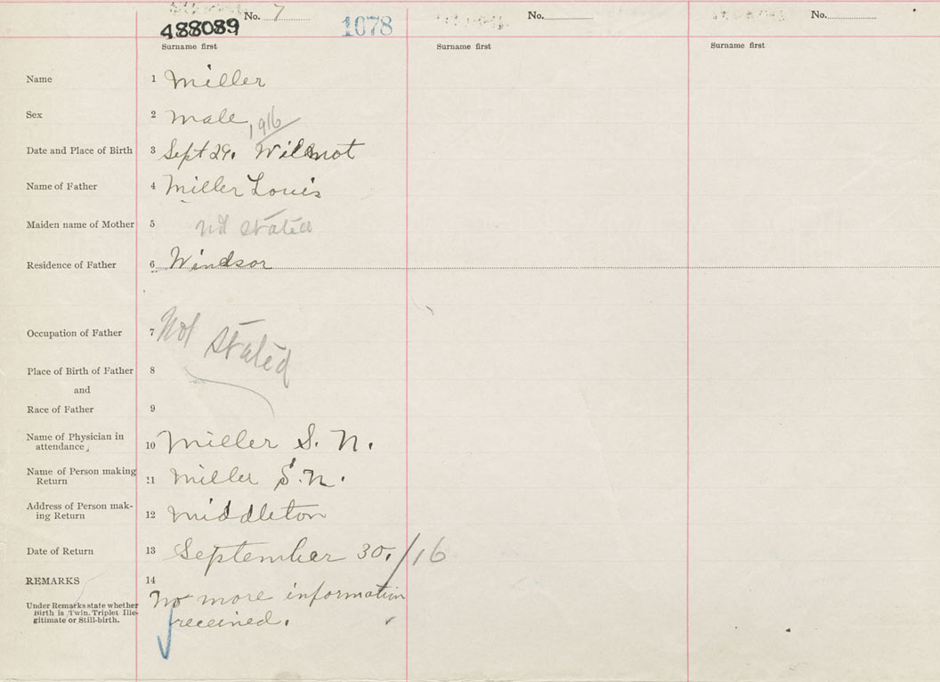 Male Birth Registration: Year: 1916 number: 48800089