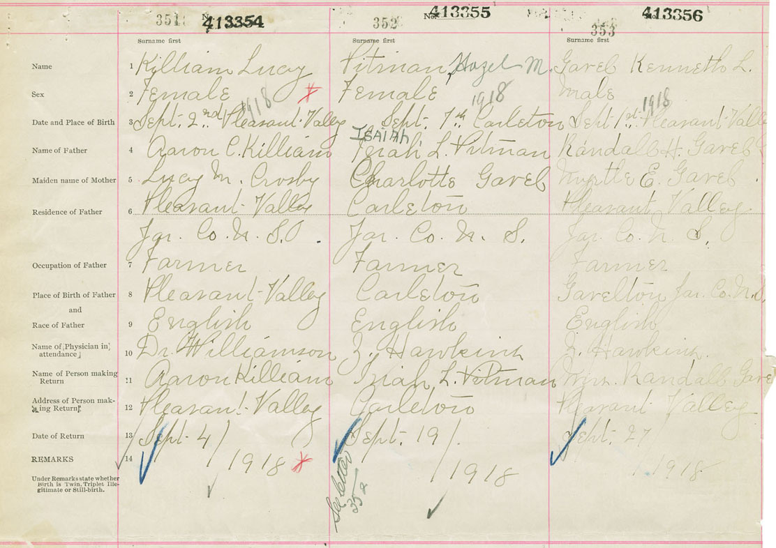 Male Birth Registration: Year: 1918 number: 41300356