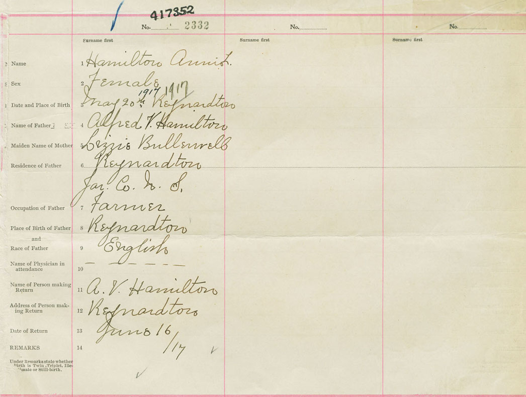 Female Birth Registration: Year: 1917 number: 41700352