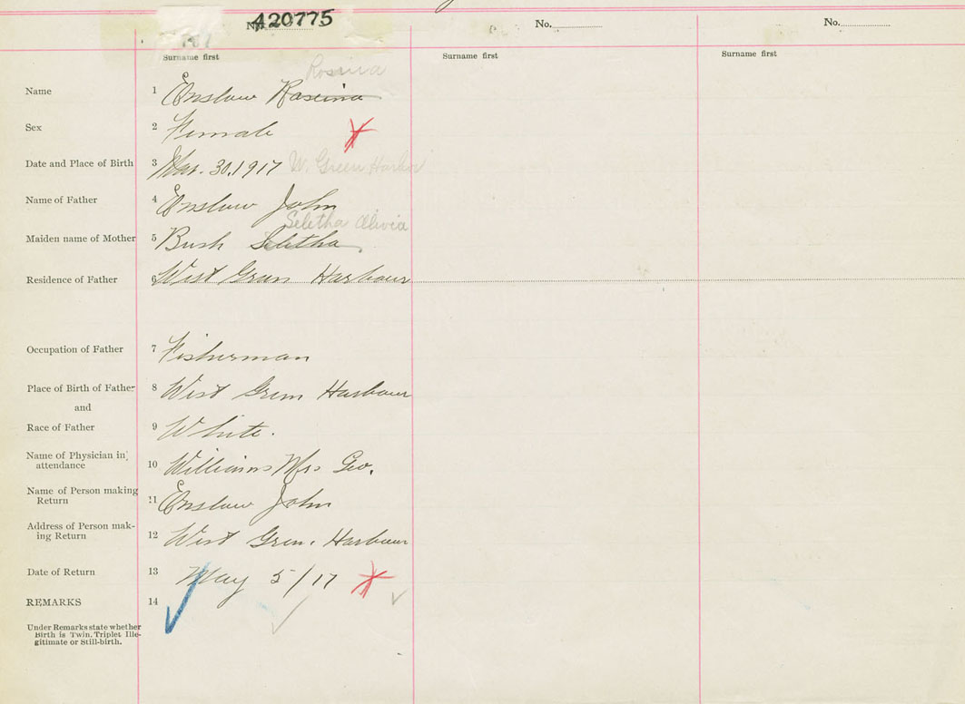 Female Birth Registration: Year: 1917 number: 42000775