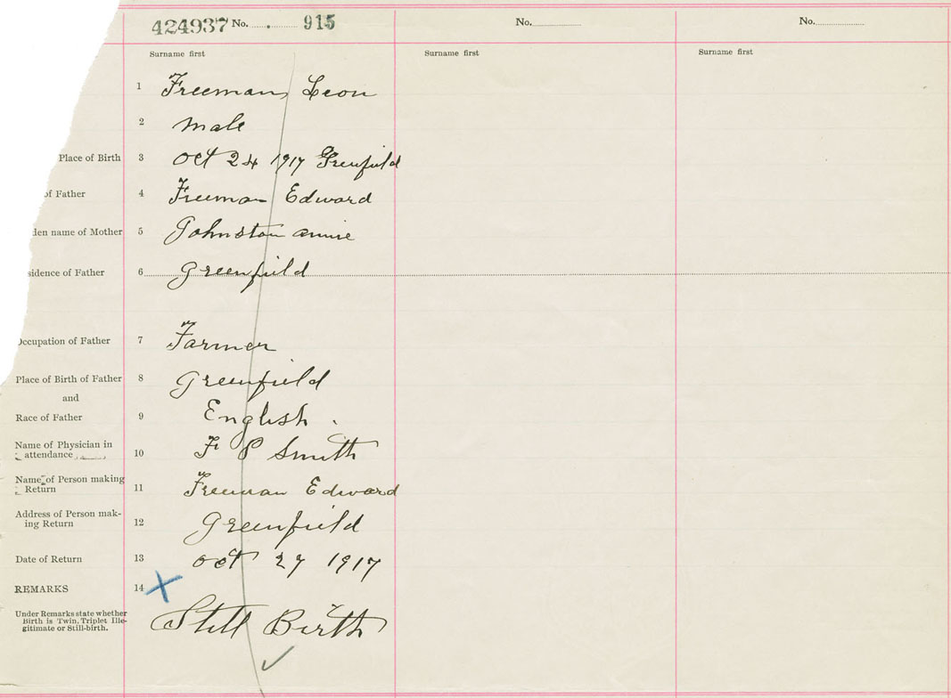 Male Birth Registration: Year: 1917 number: 42400937