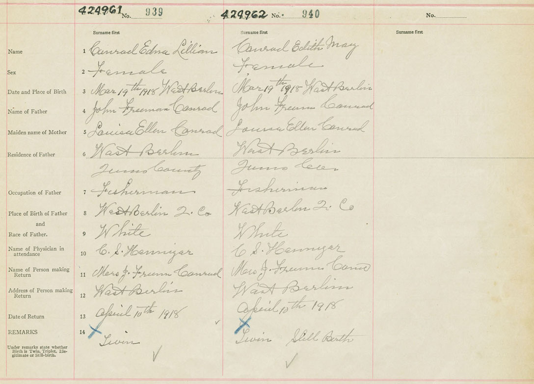Female Birth Registration: Year: 1918 number: 42400962