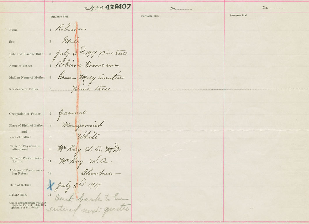 Male Birth Registration: Year: 1917 number: 42600407