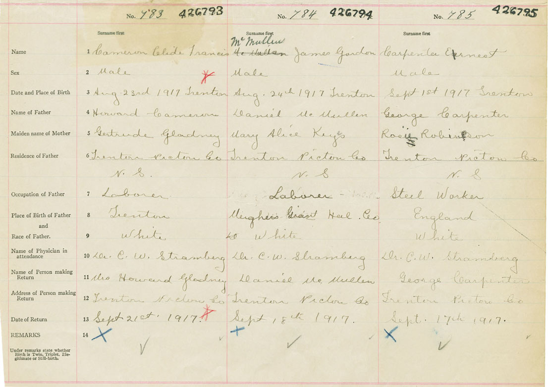 Male Birth Registration: Year: 1917 number: 42600793