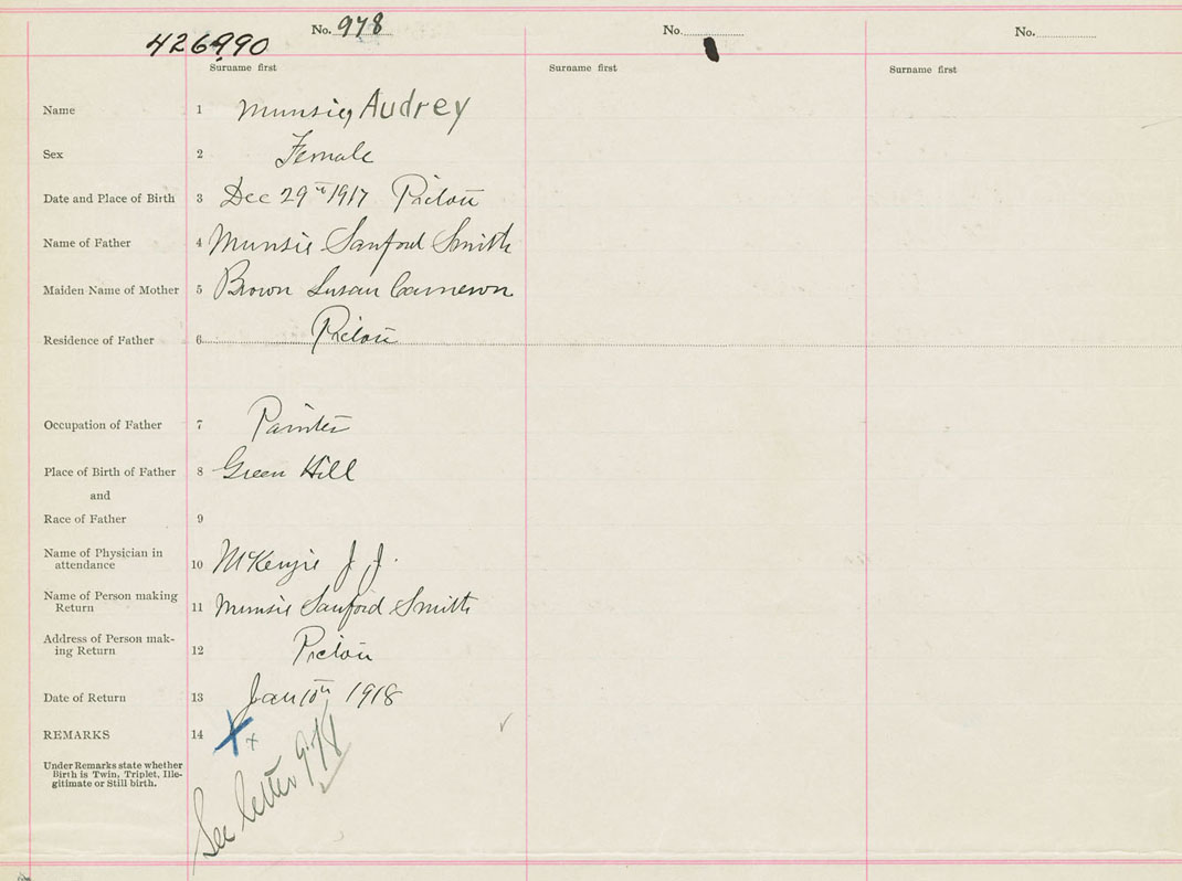 Female Birth Registration: Year: 1917 number: 42600990