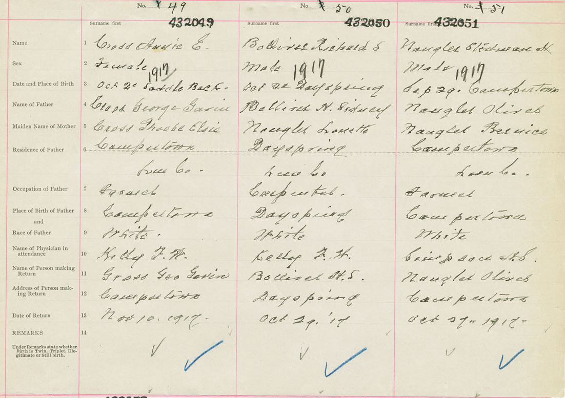 Female Birth Registration: Year: 1917 number: 43200049