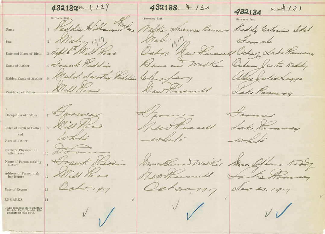 Female Birth Registration: Year: 1917 number: 43200134