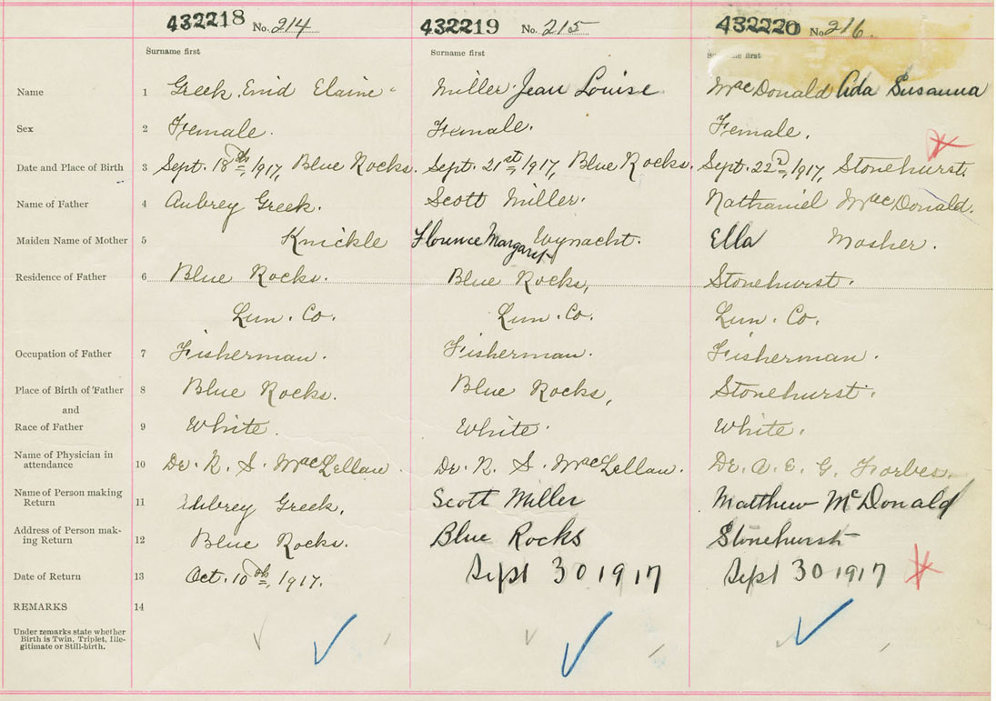 Female Birth Registration: Year: 1917 number: 43200220