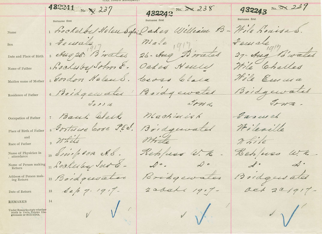 Female Birth Registration: Year: 1917 number: 43200241