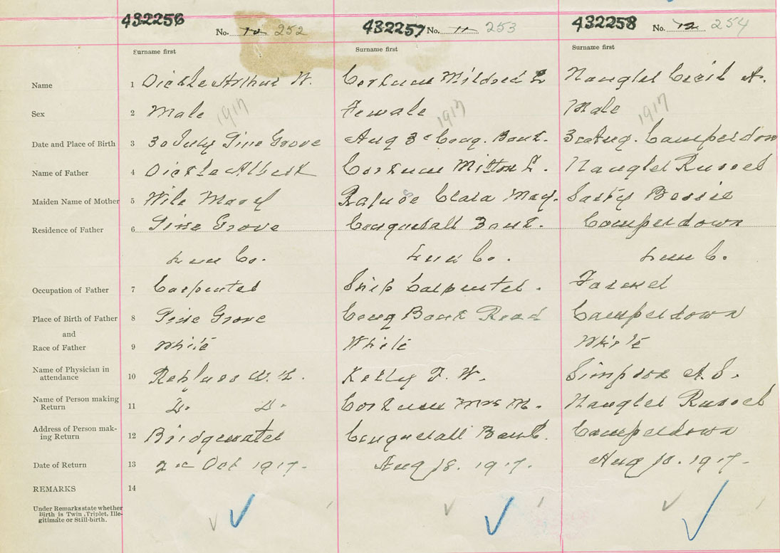 Male Birth Registration: Year: 1917 number: 43200256