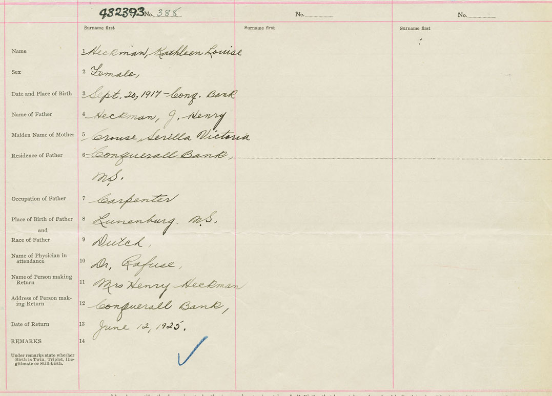 Female Birth Registration: Year: 1917 number: 43200393