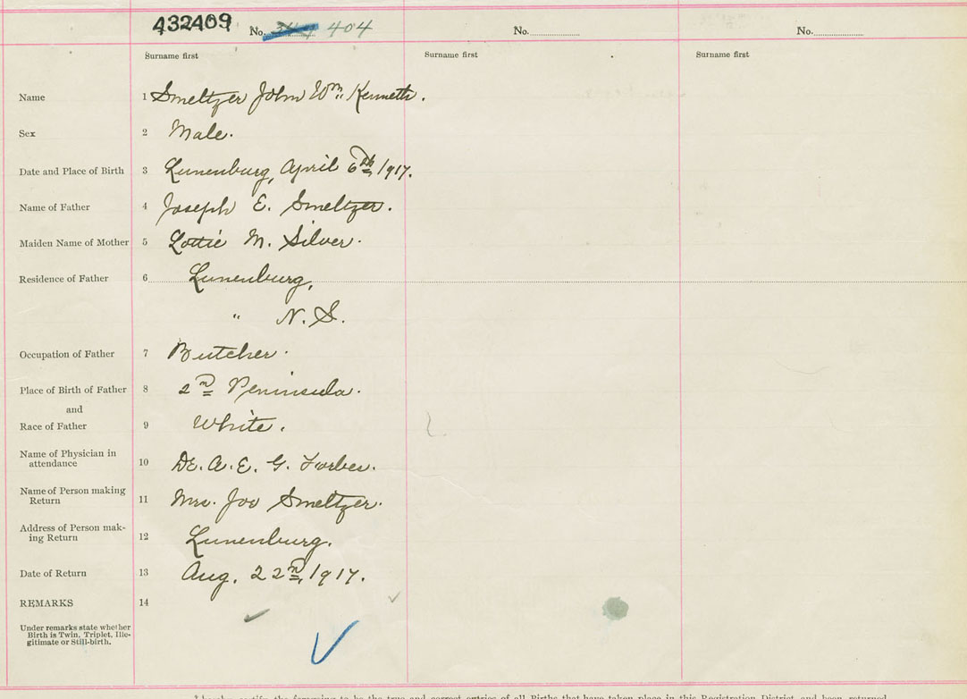 Male Birth Registration: Year: 1917 number: 43200409