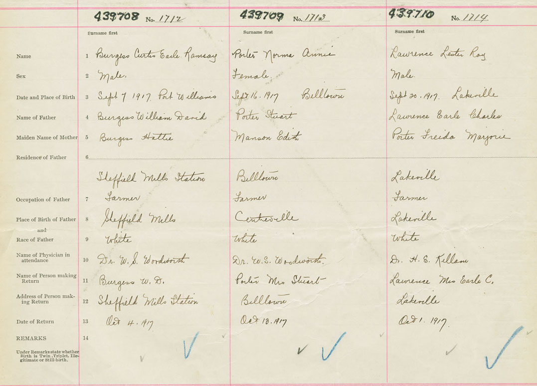 Male Birth Registration: Year: 1917 number: 43900710