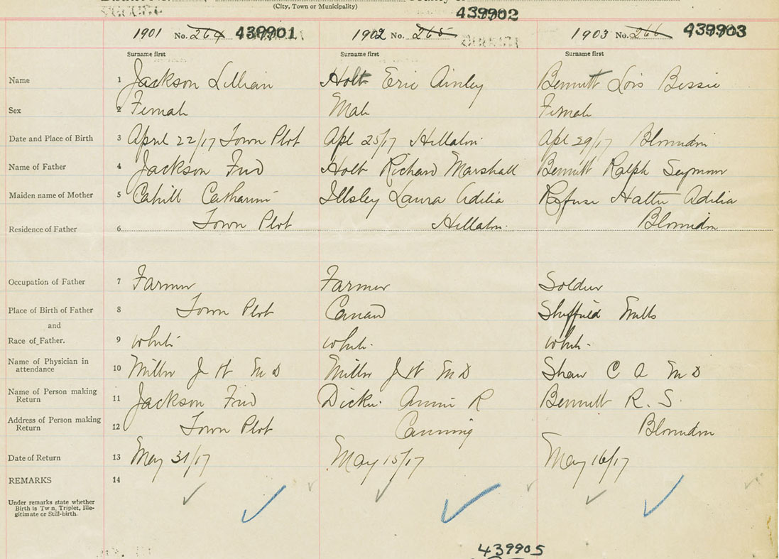 Female Birth Registration: Year: 1917 number: 43900901