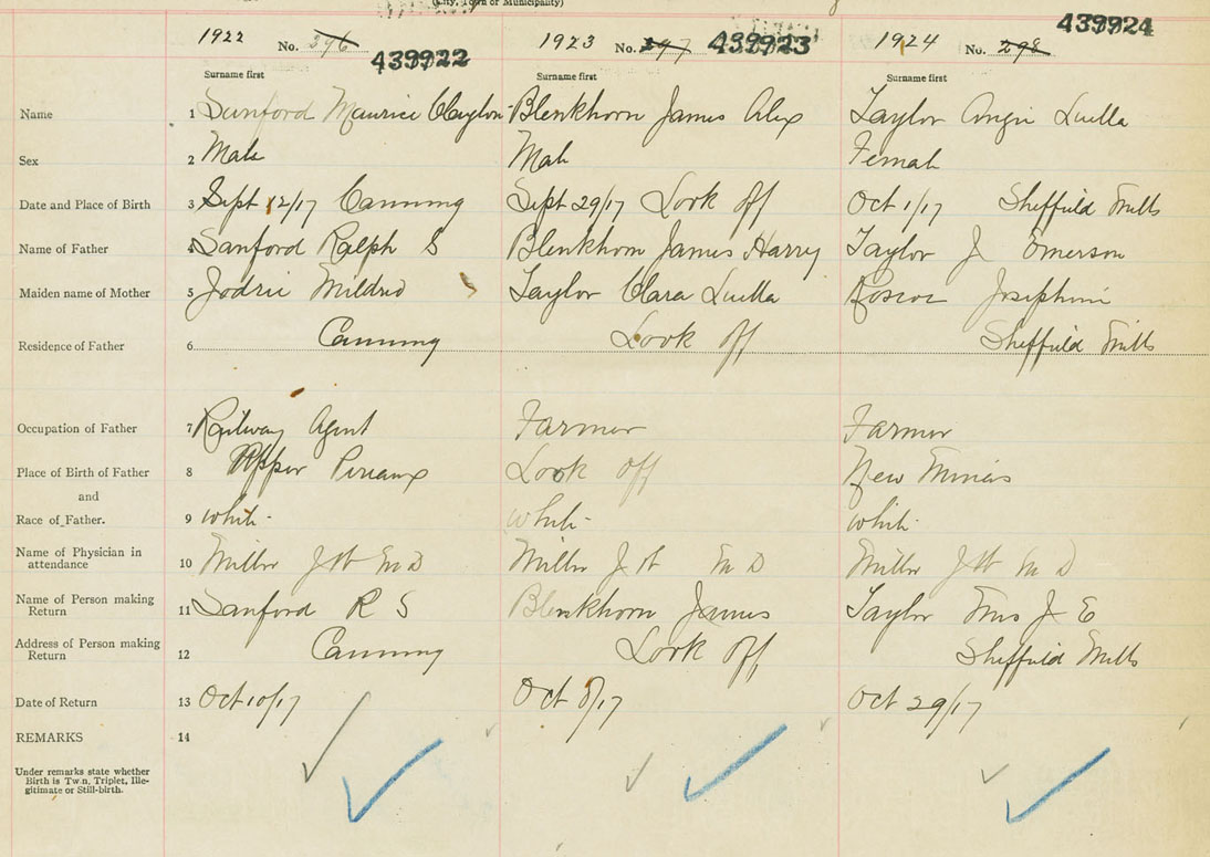 Male Birth Registration: Year: 1917 number: 43900922