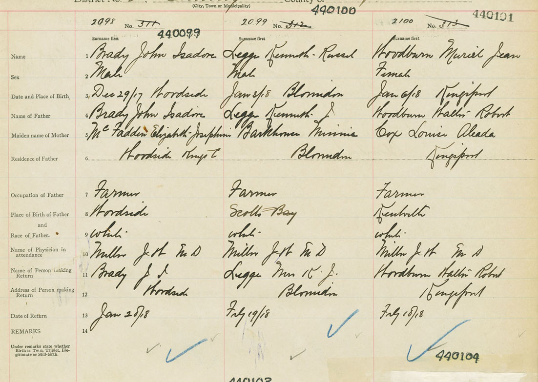 Female Birth Registration: Year: 1918 number: 44000101