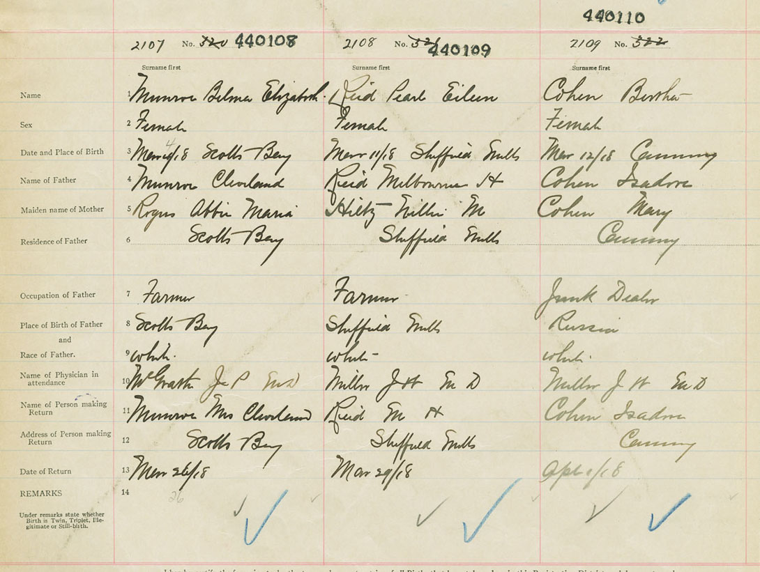 Female Birth Registration: Year: 1918 number: 44000110