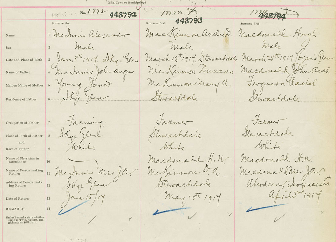 Male Birth Registration: Year: 1917 number: 44300794