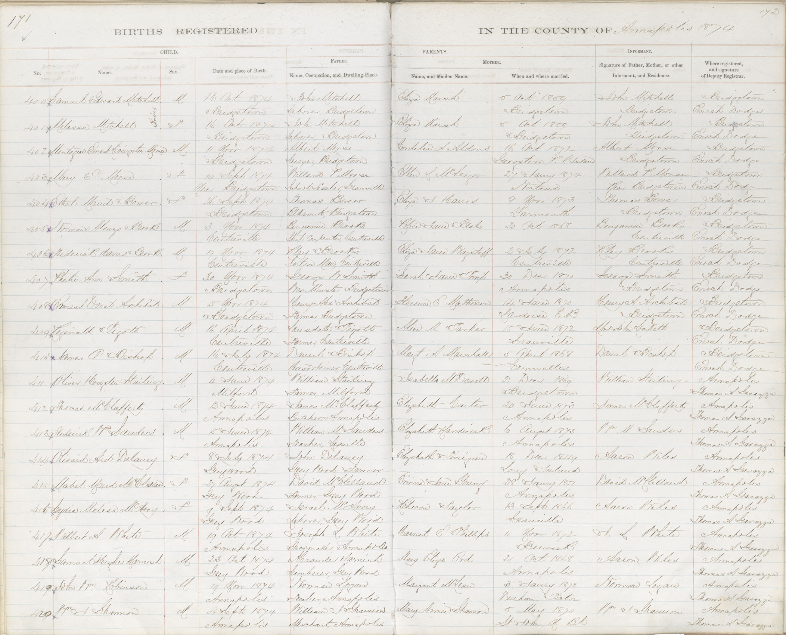 Birth Registration: Year: 1874 book: 1801 page: 171 number: 420