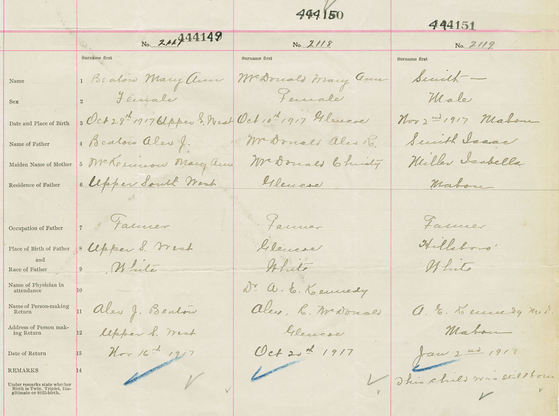 Female Birth Registration: Year: 1917 number: 44400149