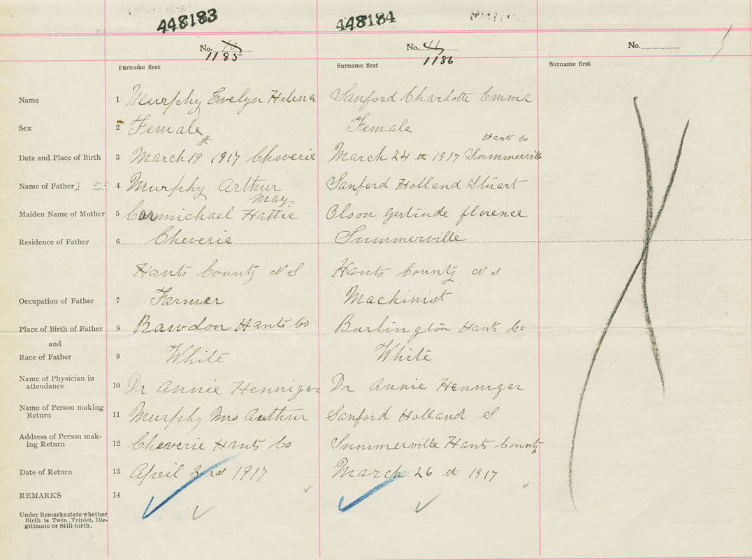 Female Birth Registration: Year: 1917 number: 44800184