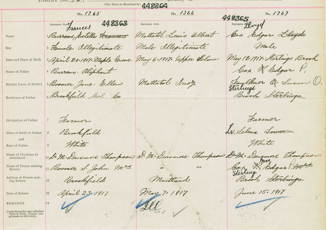 Male Birth Registration: Year: 1917 number: 44800365