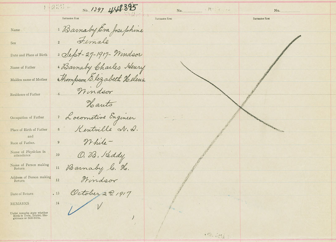 Female Birth Registration: Year: 1917 number: 44800395