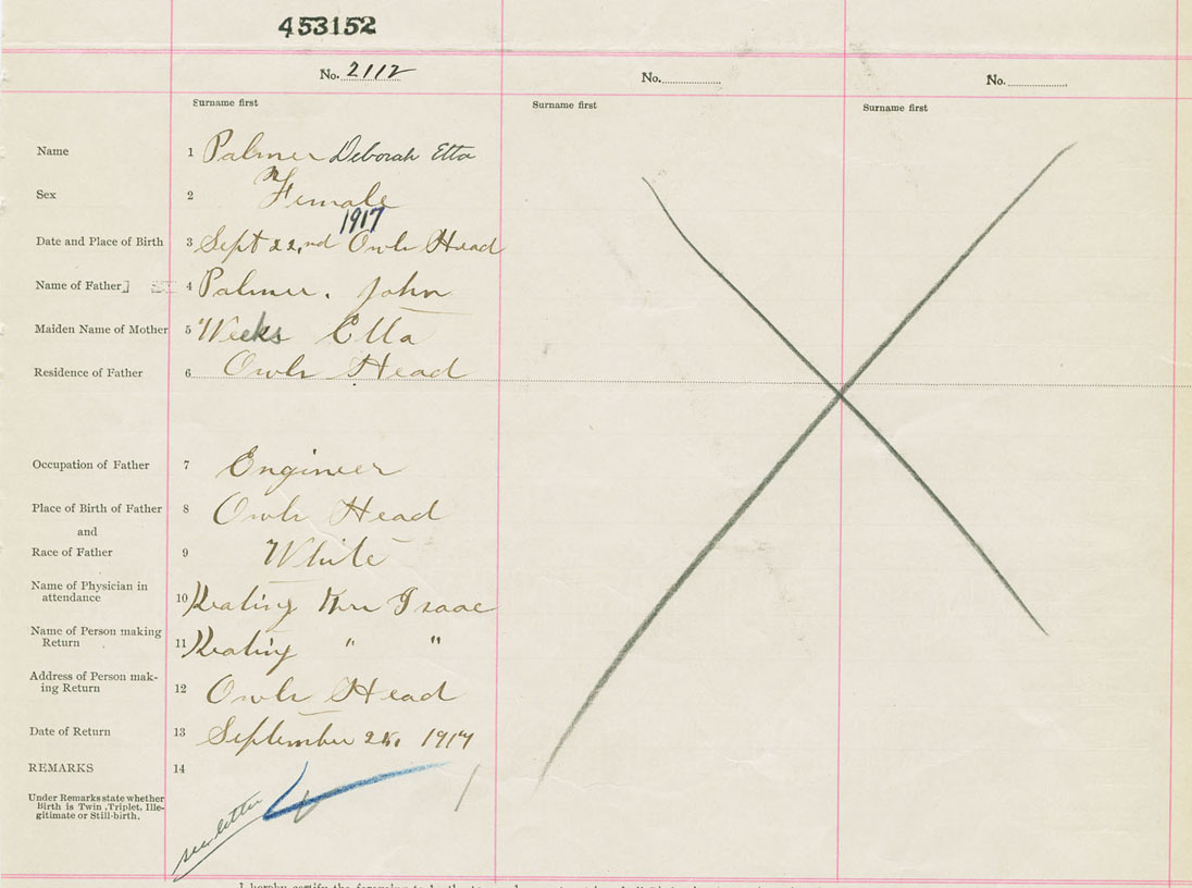 Female Birth Registration: Year: 1917 number: 45300152