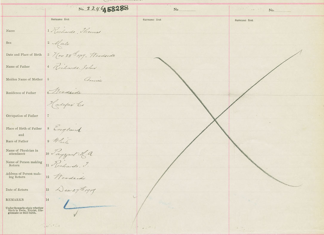 Male Birth Registration: Year: 1917 number: 45300288