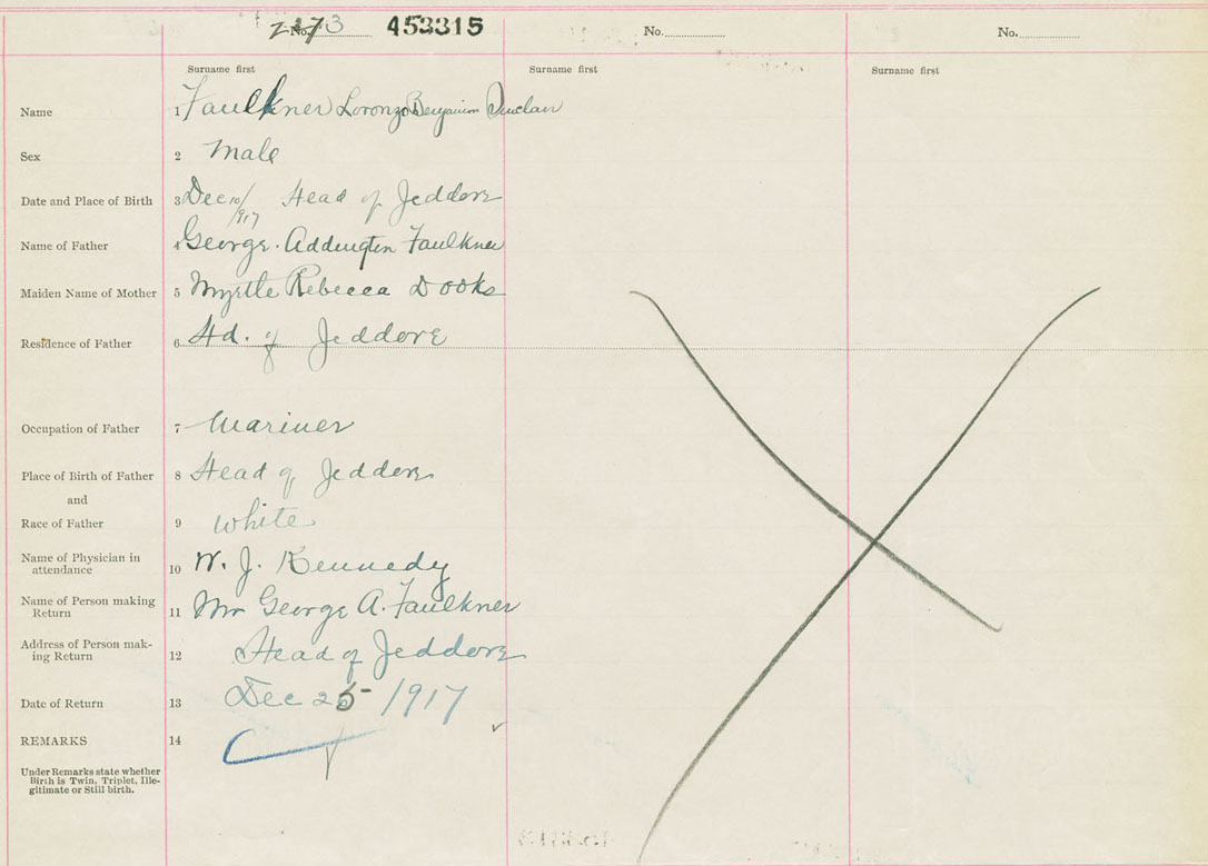 Male Birth Registration: Year: 1917 number: 45300315